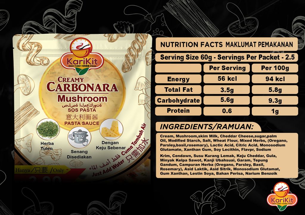Enjoy our SIMPLE to PREPARE CREAMYYYY Carbonara Mushroom Pasta Sauce: Made with Real Herbs, Fresh Cheese and amazing creamy texture!